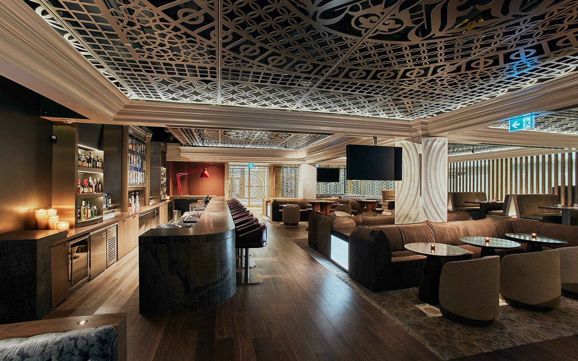 Combination of custom elements, such as exclusively designed Canadian maple wood furniture, manufactured in Toronto with bespoke artwork, handcrafted lighting details, and a warm colour palette of deep reds, seawater blues and layers of white to reflect Toronto's four seasons. Honouring the integrity of local and natural elements, the restaurant's ethos is expressed through the commitment to local menu ingredients on the plate and local and natural material honesty in the design.